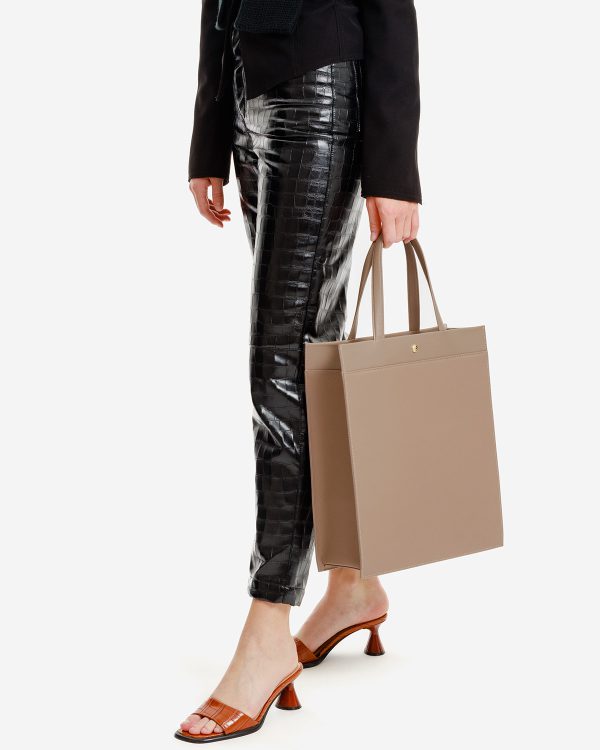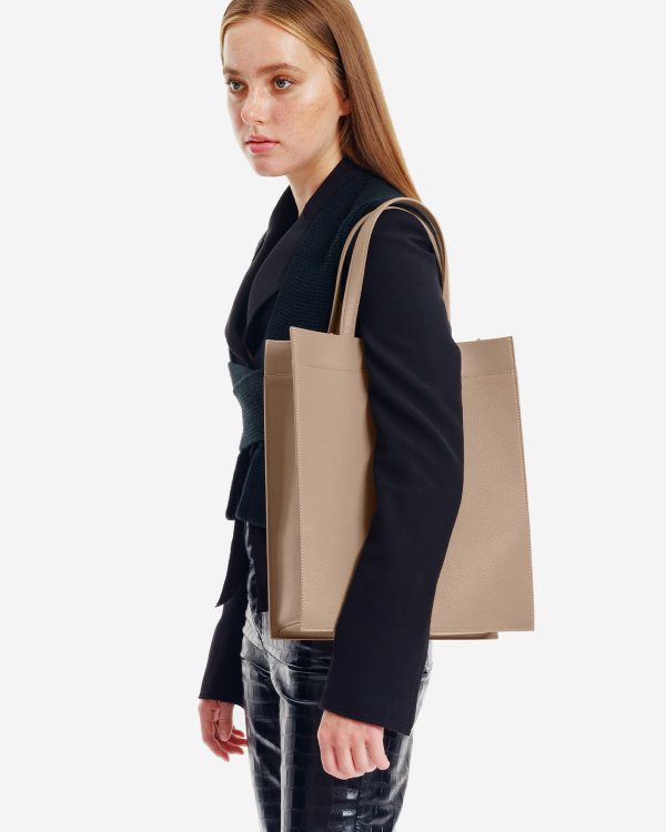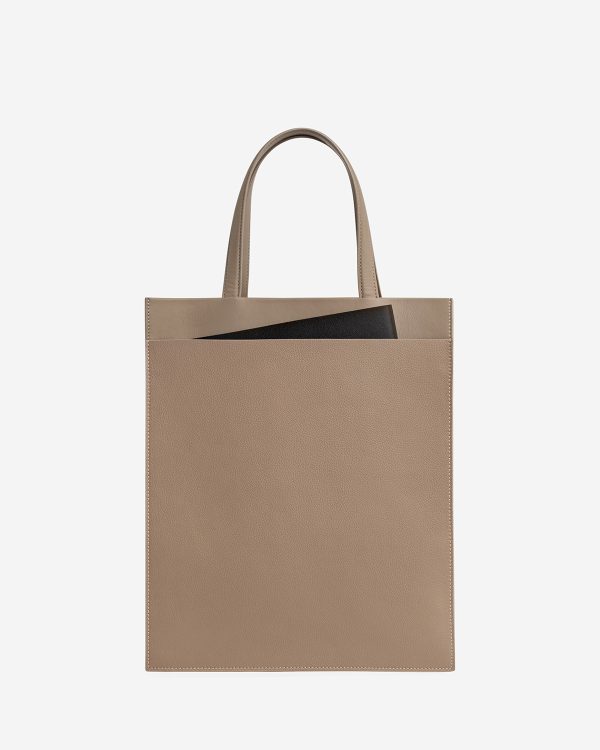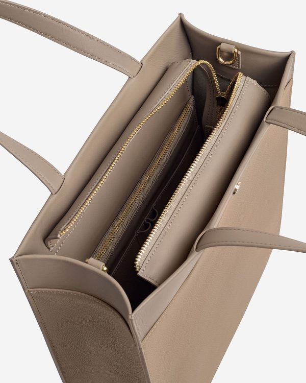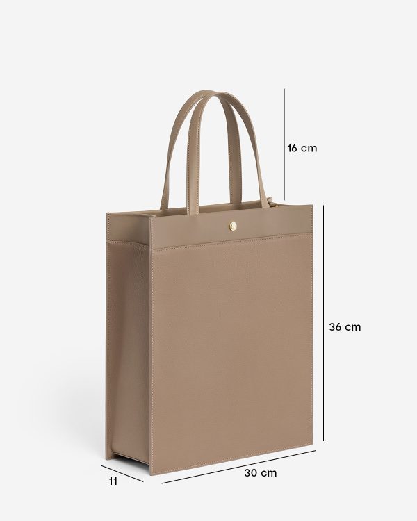 กระเป๋าหนังแท้ทรง Tote สี่เหลี่ยมแนวตั้ง เหมาะสำหรับคนทำงานที่ต้องพกอุปกรณ์หลากหลาย ด้านในเป็นช่องเปิดกว้าง มาพร้อมกับ Internal Organizer ช่วยเก็บของชิ้นเล็กให้เป็นระเบียบเรียบร้อย ด้านนอกเป็นหนัง 2 แบบ คือแบบอัดลายและแบบเรียบ พร้อมเดินด้ายสีขาว ทำให้กระเป๋าดูมีมิติ ด้านในรีดเสริมด้วยผ้าอคันทรา ให้ผิวสัมผัสนุ่ม ดูสะอาดเรียบร้อย มาพร้อมแผ่นรองเสริมความแข็งแรงก้นกระเป๋า ทำให้ใส่ของแล้วไม่เสียทรง รองรับการใส่ Macbook ขนาด 13 นิ้วได้