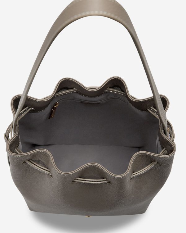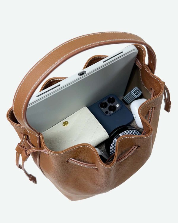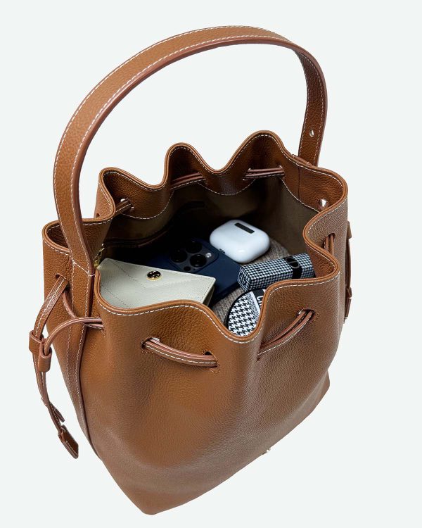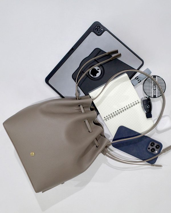 กระเป๋าทรง Bucket หรือทรงขนมจีบ ดึงอัตลักษณ์เด่นๆของรุ่น Carrie มาใช้ อาทิ เทคนิคการเดินด้ายด้วยเส้นกลางสีขาวครีม การเย็บชายให้เป็นสี่เหลี่ยม น้ำหนักเบา จุได้เยอะ คงจุดเด่น “ไม่เจ็บไหล่” และยังเข้าทรงเข้าบอดี้ ไม่ติดวงแขน