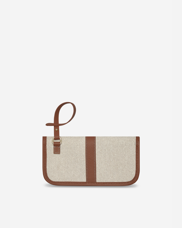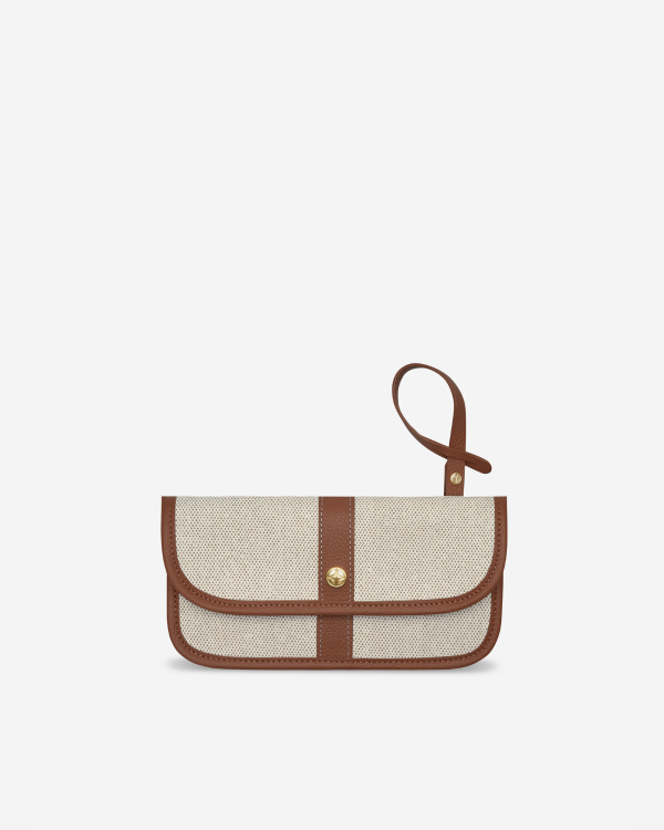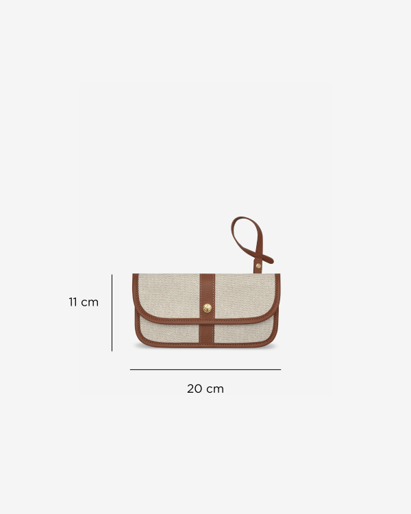 Pouchie กระเป๋าแคนวาสอเนกประสงค์ ขนาดเท่าคลัทซ์ ตัดเย็บขอบด้วยหนังแท้สีเดียวกับ Carrie mini